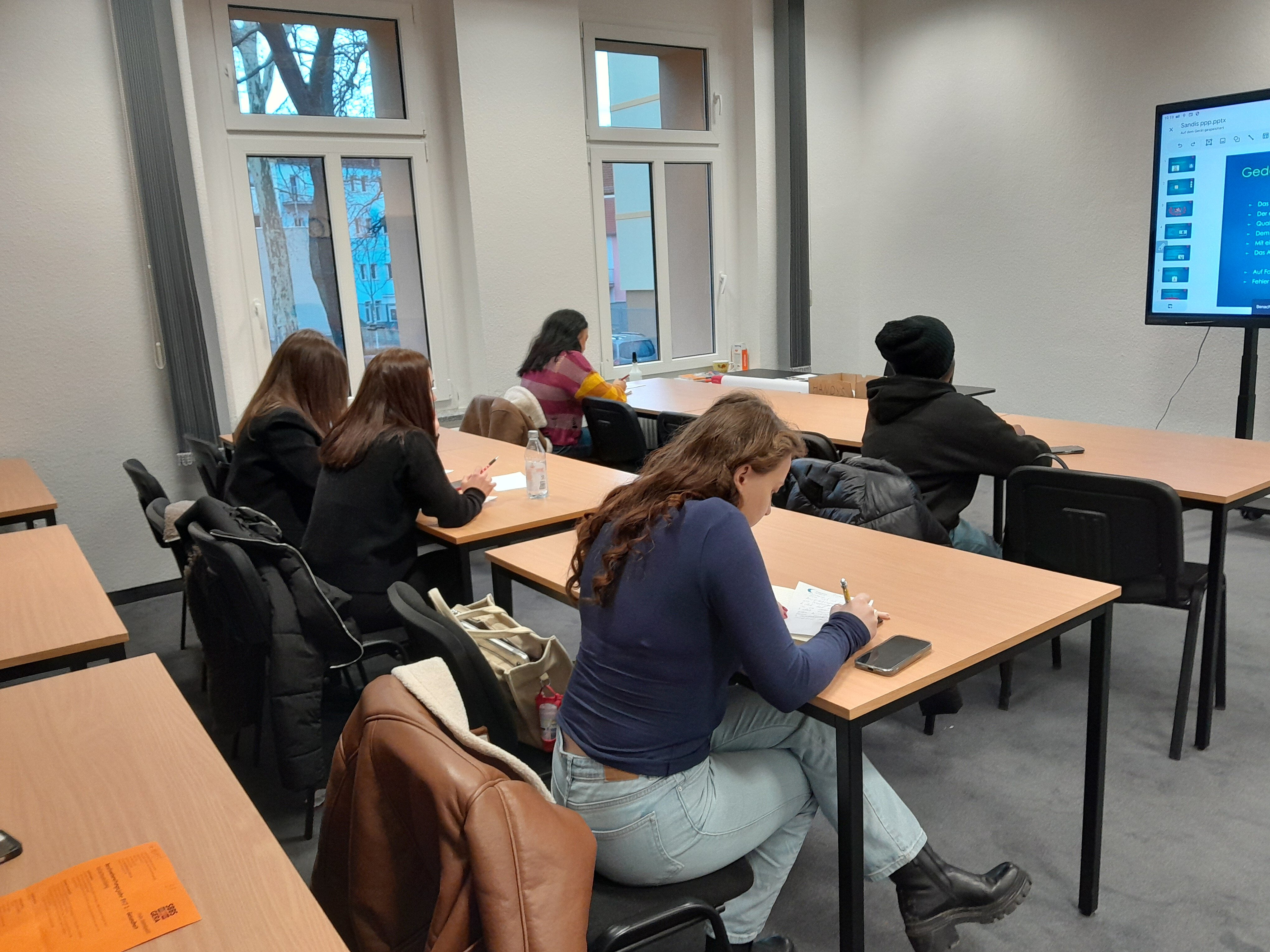 Im Mittelpunkt unseres Angebotes standen grundlegende Informationen zum Bewerbungsschreiben und Lebenslauf. Hier arbeiteten wir mit den Teilnehmenden gemeinsam berufliche Vorstellungen heraus und Formulierungsmöglichkeiten.